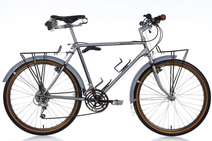 Kent Eriksen started Moots Cycles in his Sore Saddle Cyclery shop in Steamboat Springs, Colorado back in 1981. His bikes were designed to go anywhere and do anything. Early Moots bikes had a number of very unique and innovative features, such as the Moots Mounts that allowed cantilever brakes to be position to suit different wheel sizes, “Road Handles” that were an early form of bar ends, radius seatstays for more comfort, portage pads, and big fenders for oversize and tires made by Rich Cast. Beeswax was used in the bolt heads to prevent rust, implying that the original owner intended to plan a worldly trip to an exotic location.