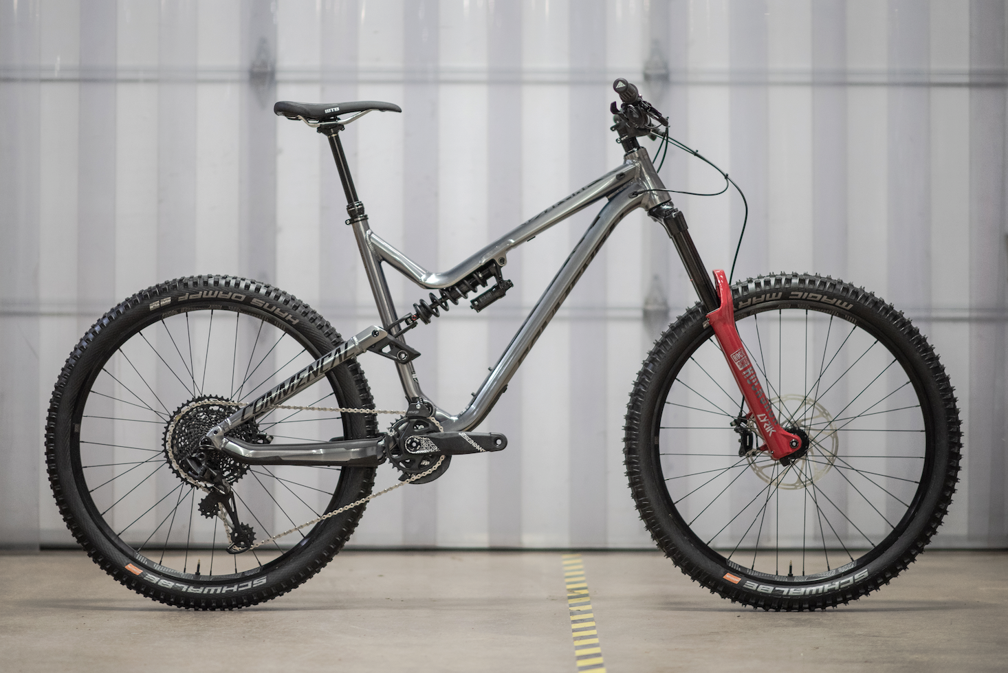 The Race build of the Meta AM is targeted at the rider searching for the best downhill performance at the lowest cost. The rear travel is controlled by a RockShox Super Deluxe coil shock. This gives the rear incredibly supple and consistent performance and excellent grip. Some lighter or heavier riders may need to adjust the spring weight to achieve optimum performance. At the front is RockShox’s Lyrik RC2 fork, which provides 170mm of sublimely damped travel, and it comes painted in their factory BoXXer red colors. This suspension combo is as good as it gets. The drivetrain, on the other hand, is more budget minded, with a mix of SRAM GX and NX Eagle components. The SRAM Guide RE brakes, are the beefier e-bike version of the popular Guide brake, which provides more stopping power at a lower cost than SRAM Codes. This combo of parts is great for racers. The high-end suspension will suit riders who value suspension performance, handling, and tuning capabilities, while the more budget oriented componentry is perfect for those who take risks and are bound to break parts.