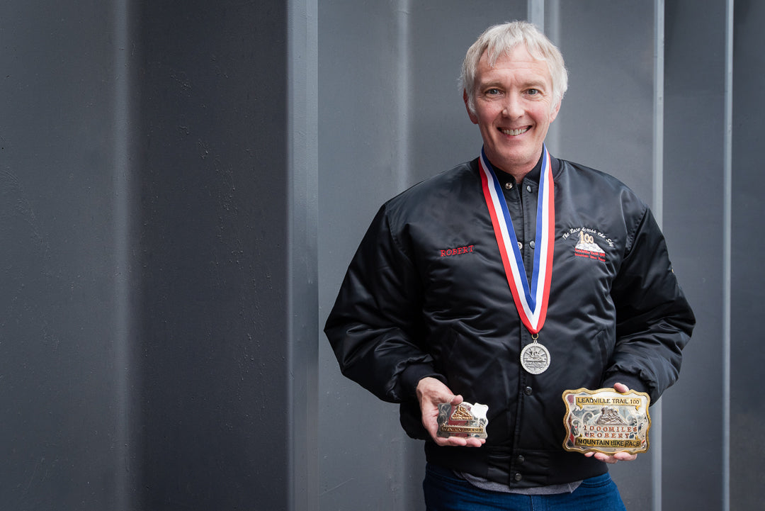 Robert Jones shows off his 1,000-Mile Club buckle along with a Leadville 100 finisher's buckle (in his right hand) for scale.The Pro’s Closet: What made you decide to do Leadville for your first time in 1997?