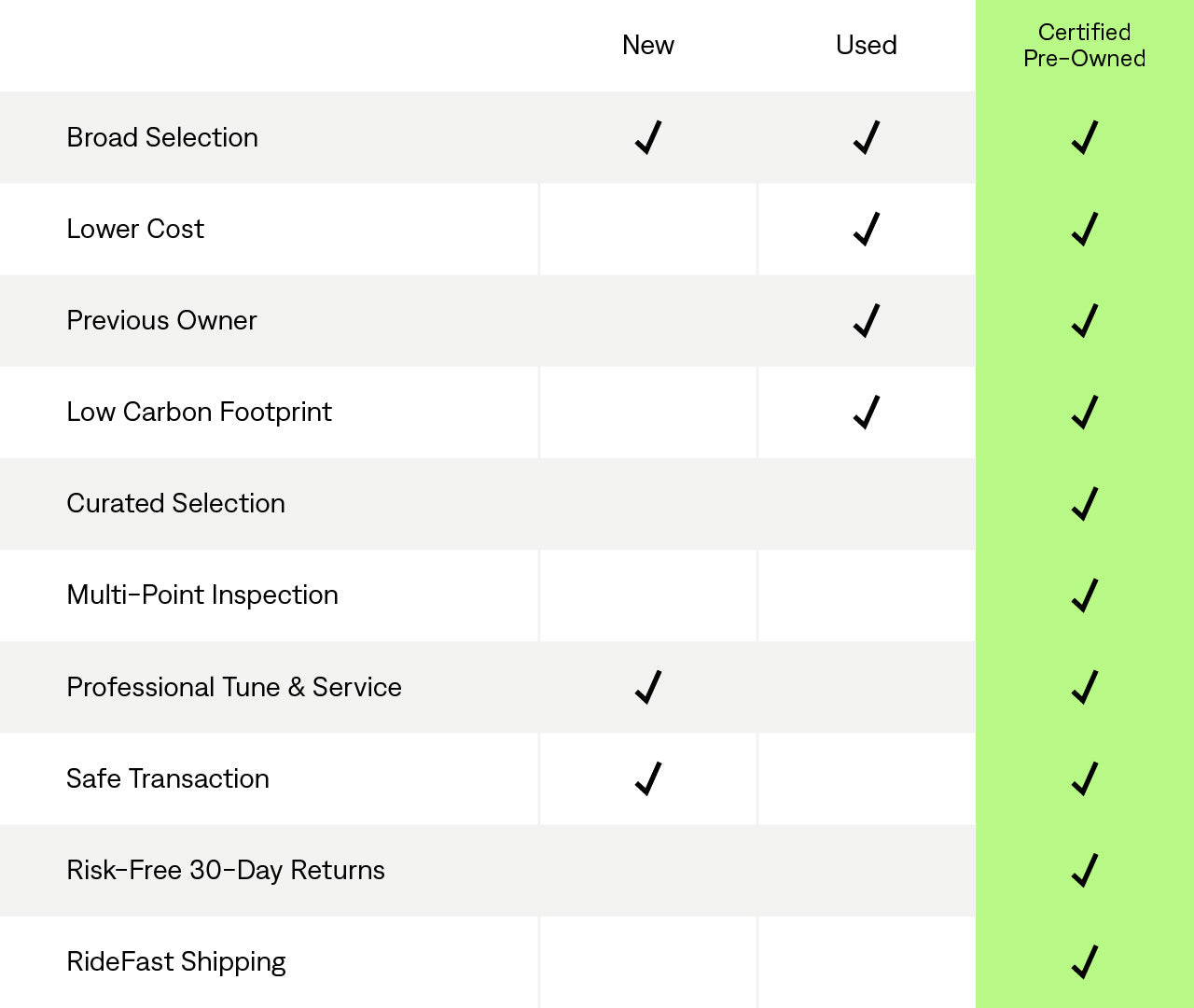 • Our team of professional bicycle buyers sifts through the ocean of used bicycles and hand-selects only those of the highest quality