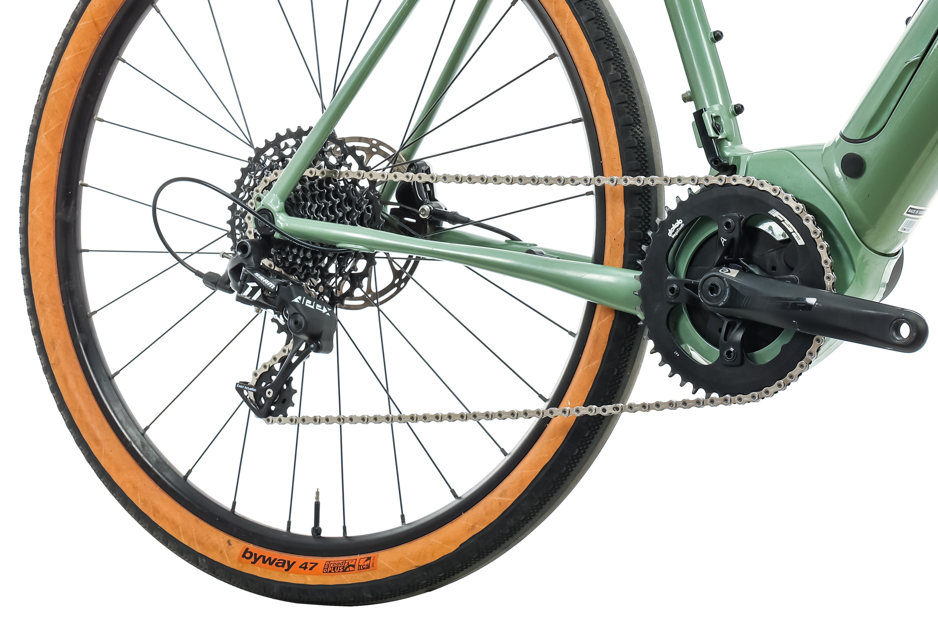 | Crankset | FSA Bosch E-Bike w/ custom Ai offset, 44t, 172.5mm |