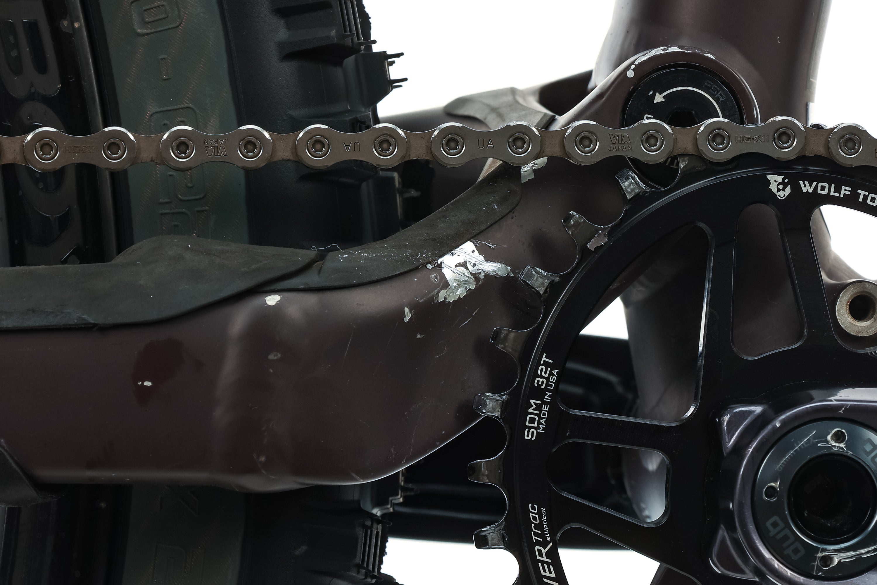 | Crankset | SRAM GX Eagle Alloy w/ Wolf Tooth PowerTrac Elliptical Chainring, 32t, 175mm |