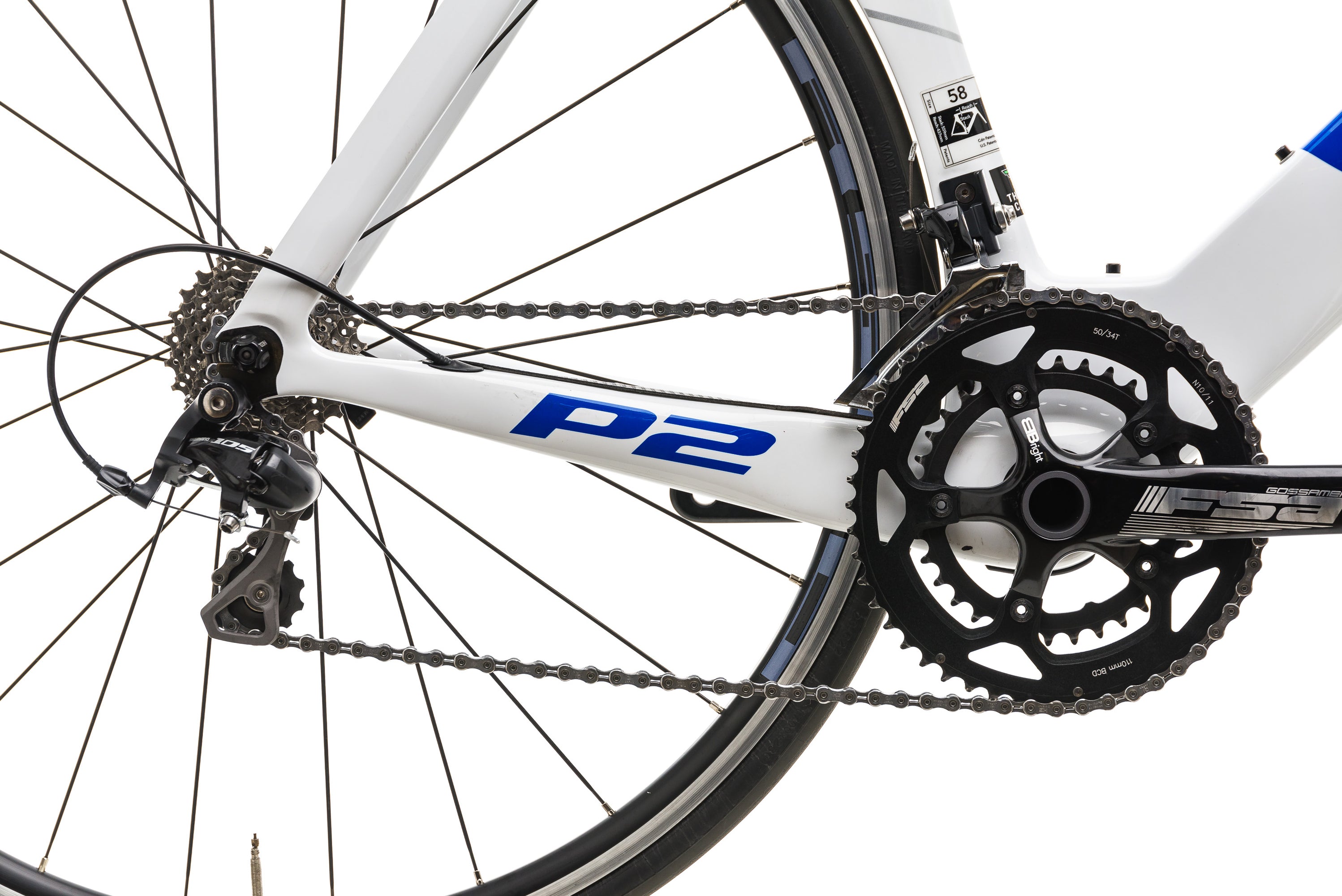 | Crankset | FSA Gossamer BBright alloy, 50/34t, 172.5 mm |