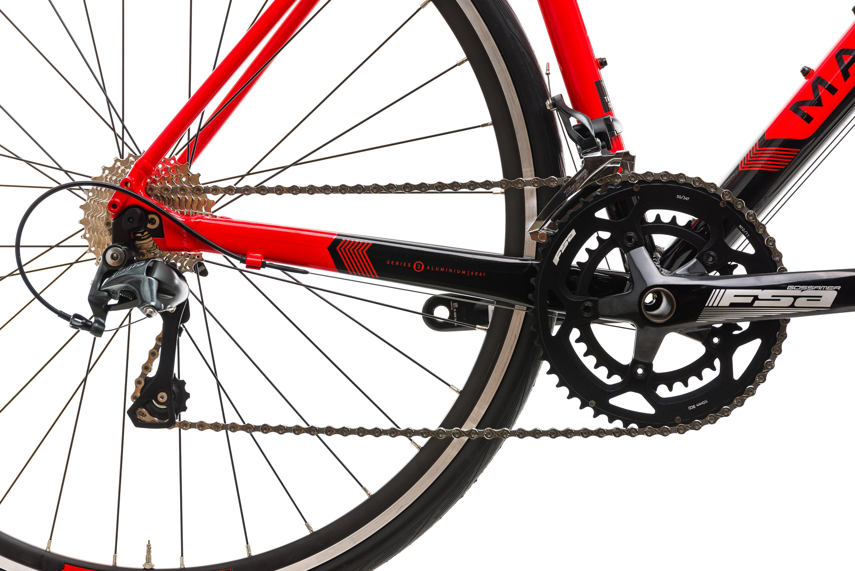 | Crankset | FSA Gossamer alloy, 50/34Tt, 175 mm |