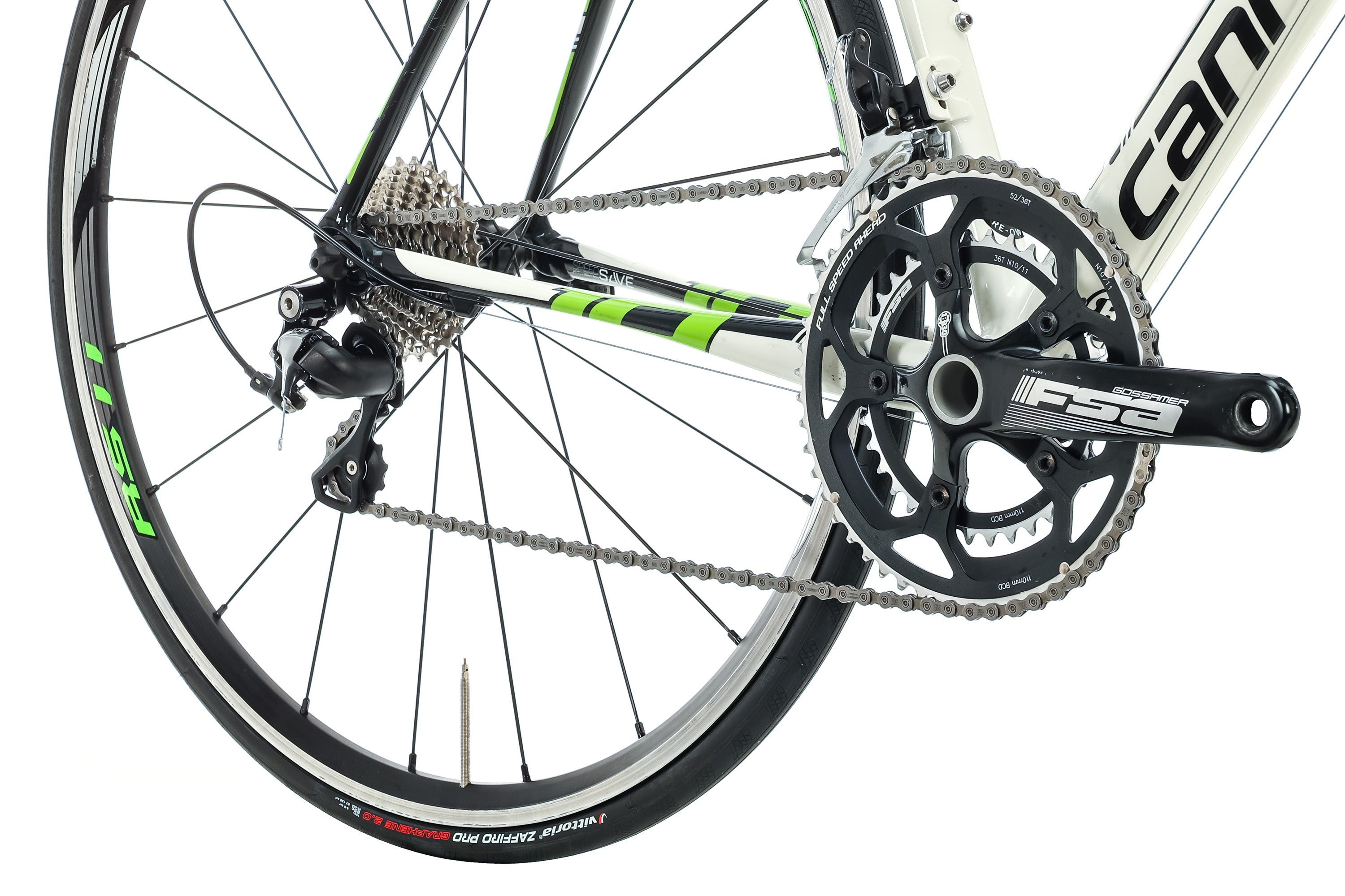 | Crankset | FSA Gossamer, 52/36t, 172.5 mm |