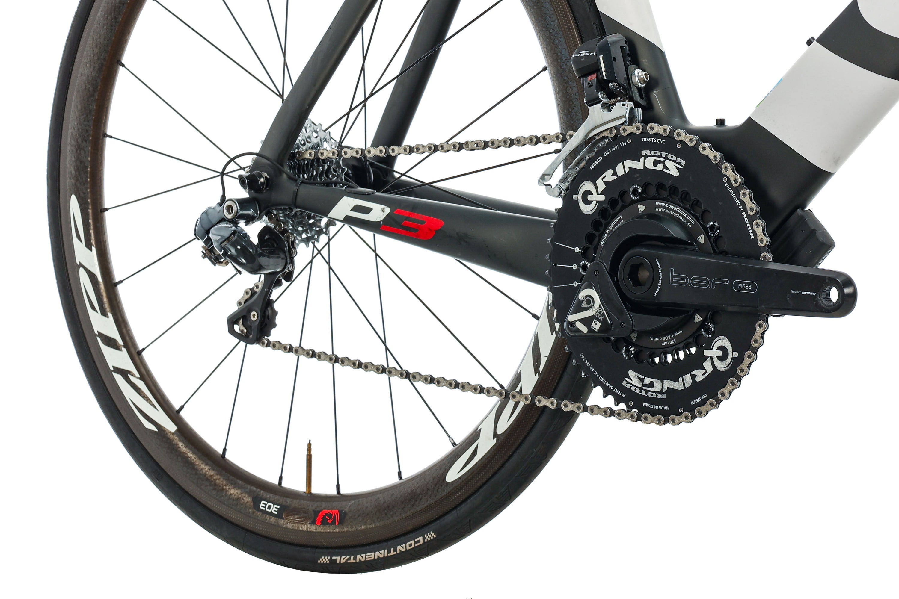 | Crankset | B.O.R. Alloy Crank Arms w/ Rotor Q-Rings Oval Chainrings and Power2Max PowerMeter, 53/39t, 172.5 mm |