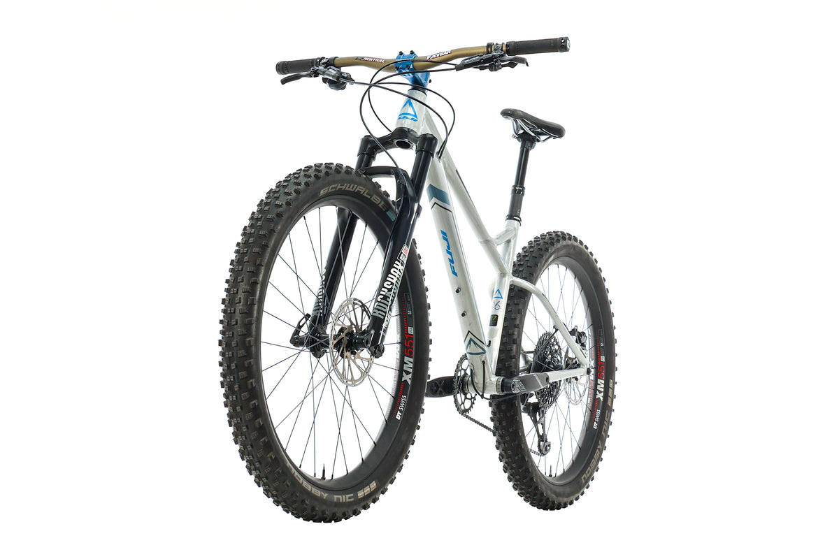 If you thought hardtails were just for cross country racing, spandex-clad, number-crunchers (note: we aren't saying there's anything wrong with this, some of us are cross country racing, spandex-clad, number-crunchers), think again! The Fuji Bighorn flaunts a geometry designed around a capable 130mm fork, which makes this 27.5"+ hardtail confident to cruise through steep technical terrain, pedal efficiently down double track, or cruise up climbs nicely. If you enjoy trails often ridden by full-suspension bikes, but want a less-expensive, lighter or easier maintenance option, check out the Fuji Bighorn!
