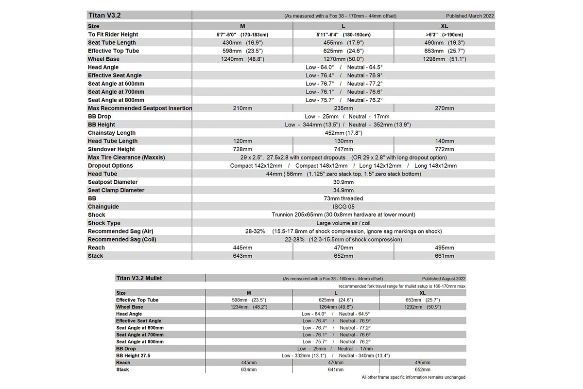 | Fork | Suggested Fork Travel range: 160-180mm (single crown only) |