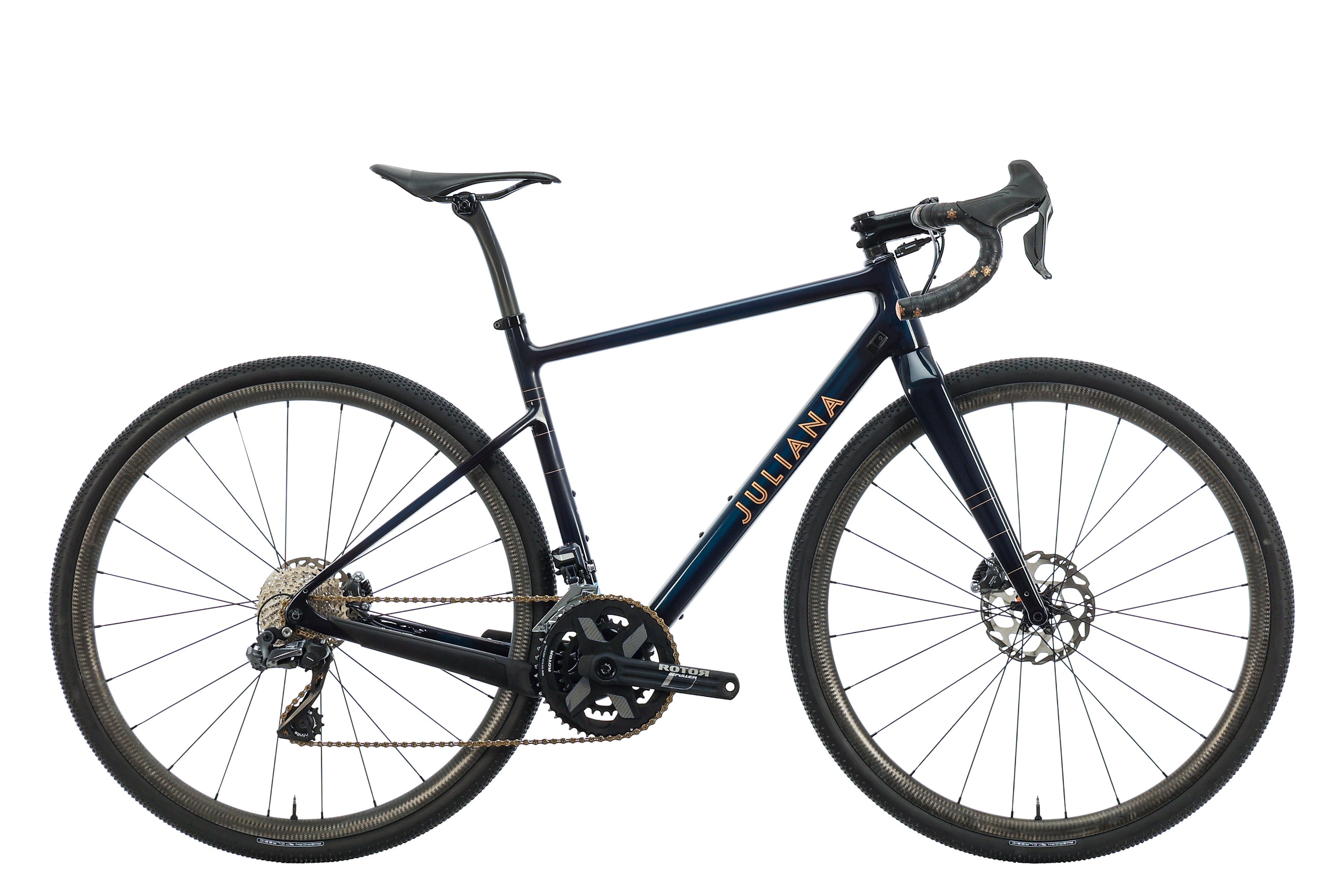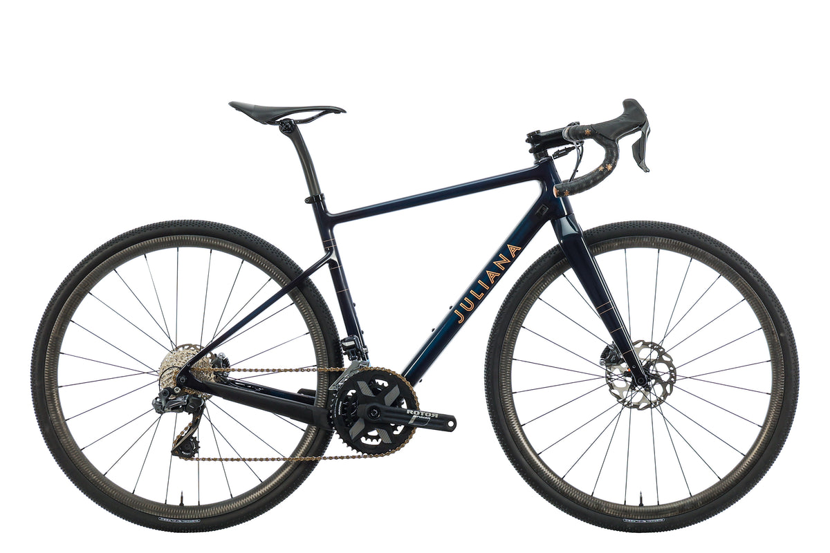 The Juliana Quincy is inspired by the path less pedaled. Miles and miles of endless dirt, adventuring at its finest. A Lightweight carbon frame, and comfortable all day riding geo put this bike at the top of gravel and adventure bikes. A long wheelbase creates a stable ride over rough terrain, with massive tire clearance to run wider tires, creating a supple ride and reducing the road chatter. Fast on climbs, and nimble on the descents, make for a great all day shred machine. Long days in the saddle have never felt so good.