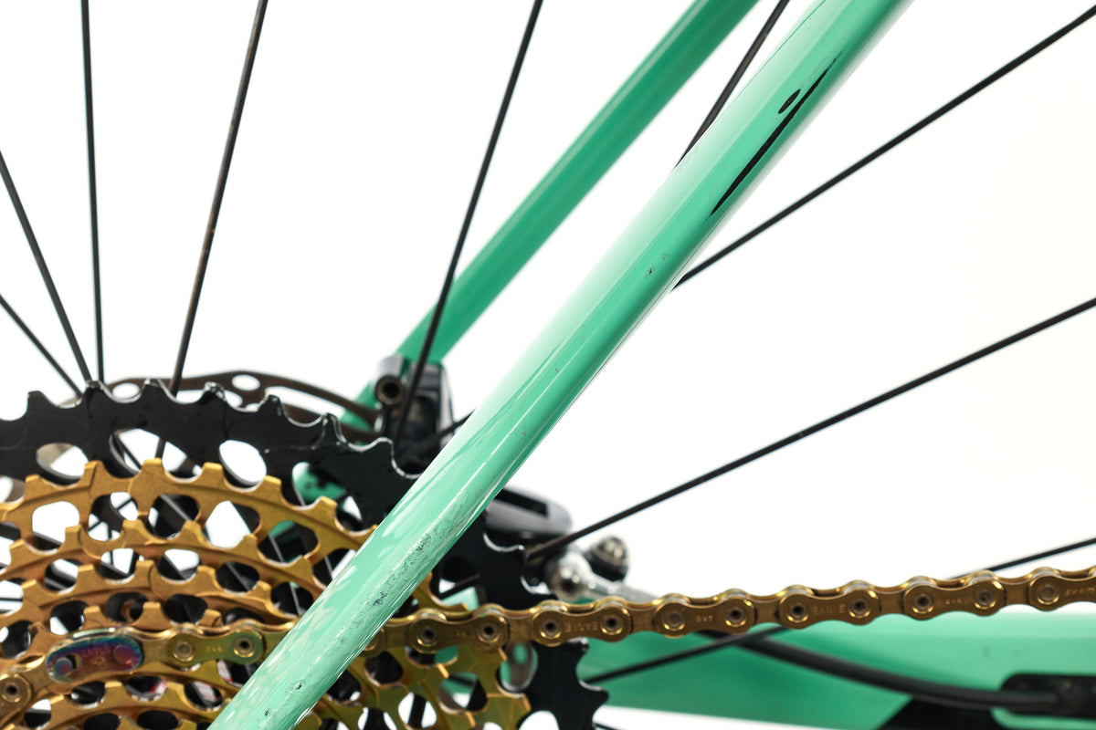 • Moderate scuffs & paint chips on the top tube, down tube, non-drive side bottom bracket area, & rear dropout