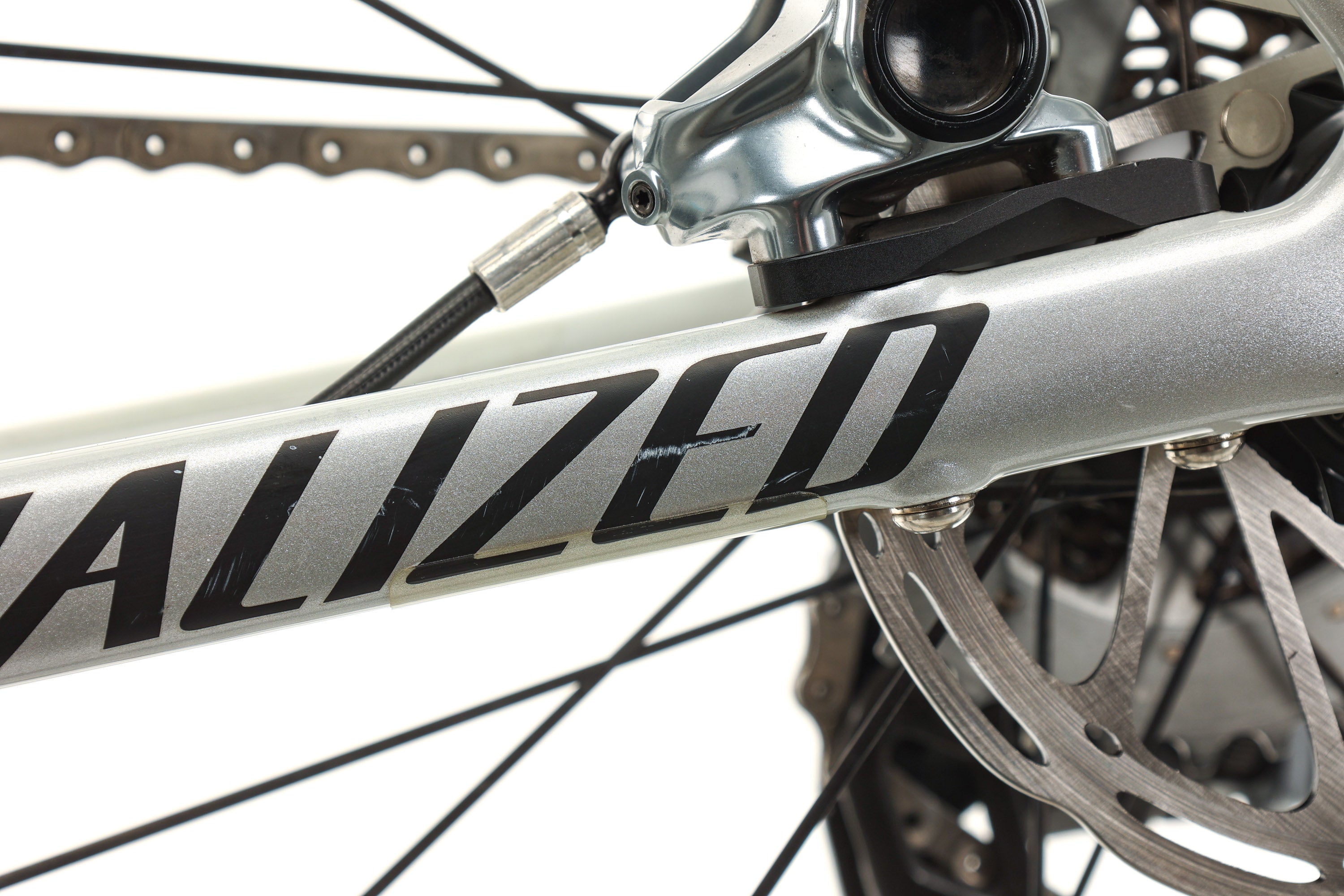 • Moderate scratches on the non-driveside down tube, seat tube, & driveside top tube