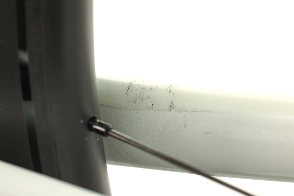• Light scratches on the down tube, top tube, seat tube, seatstays, chainstays, head tube, & fork