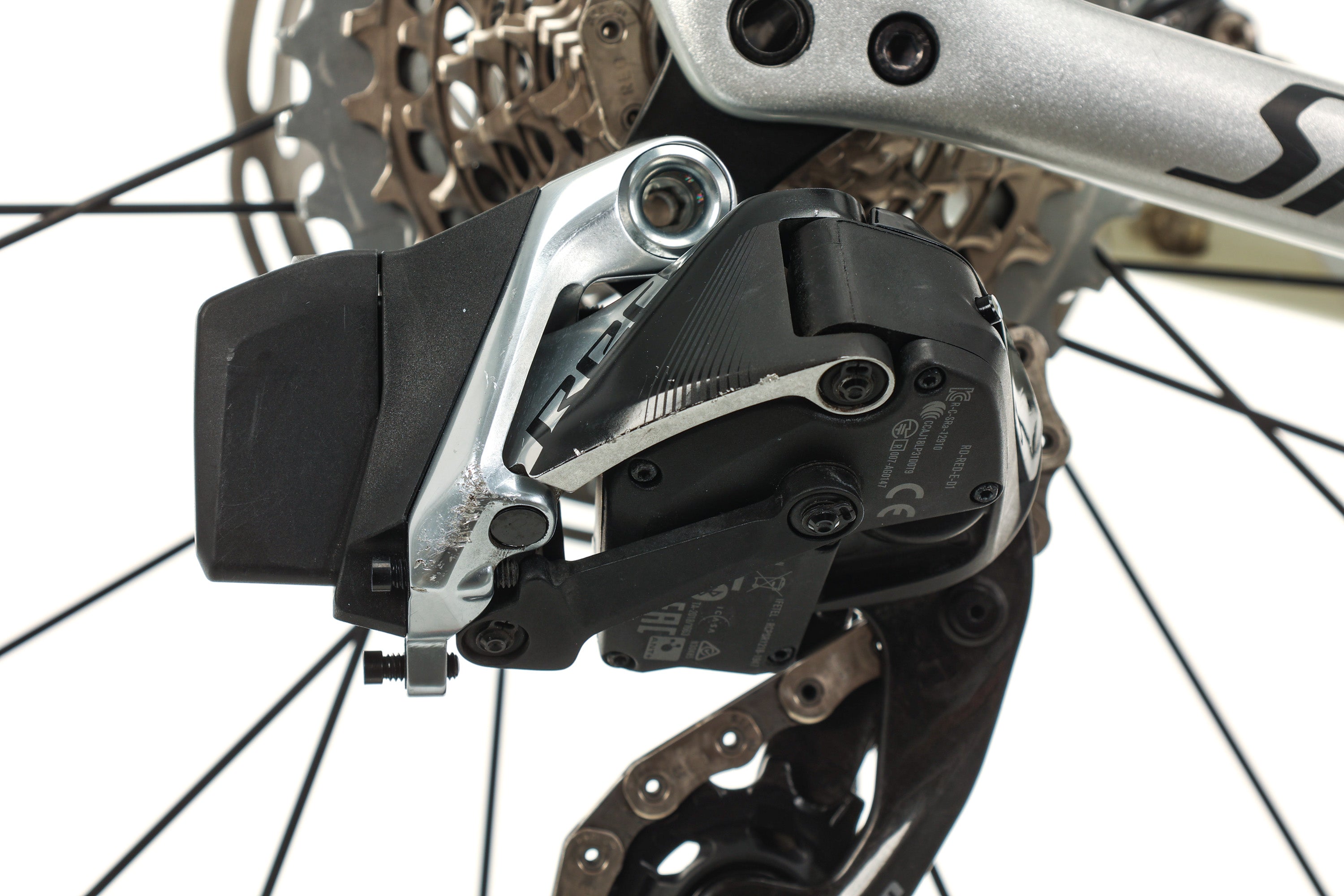 • Light scratches on the crank arms, rear derailleur, seatpost, wheelset, handlebar, & shifters