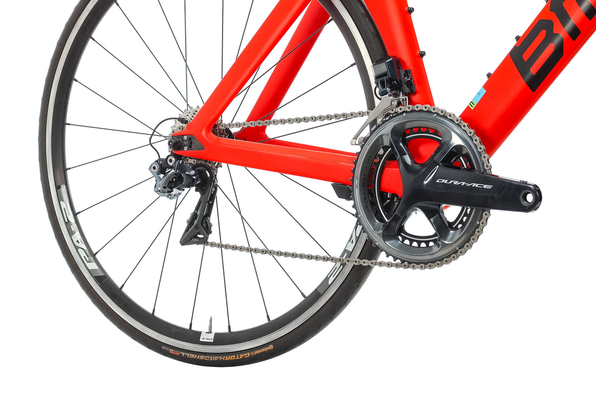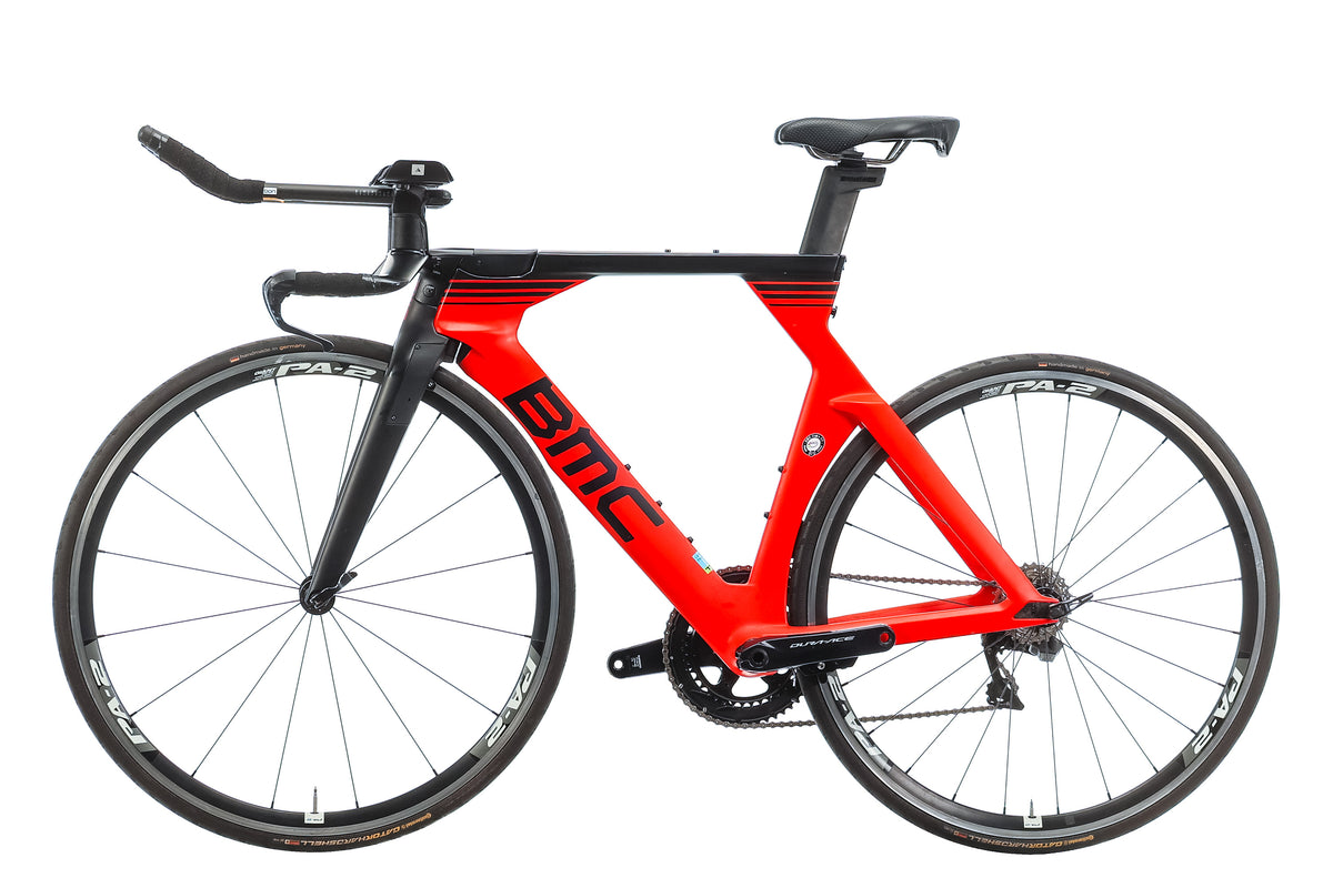 | Brakes | BMC Aero Integrated Design w/ Shimano Dura-Ace Di2 ST-R9160 Shifter/Brake Levers, Direct/Linear Pull (V-Brakes) |