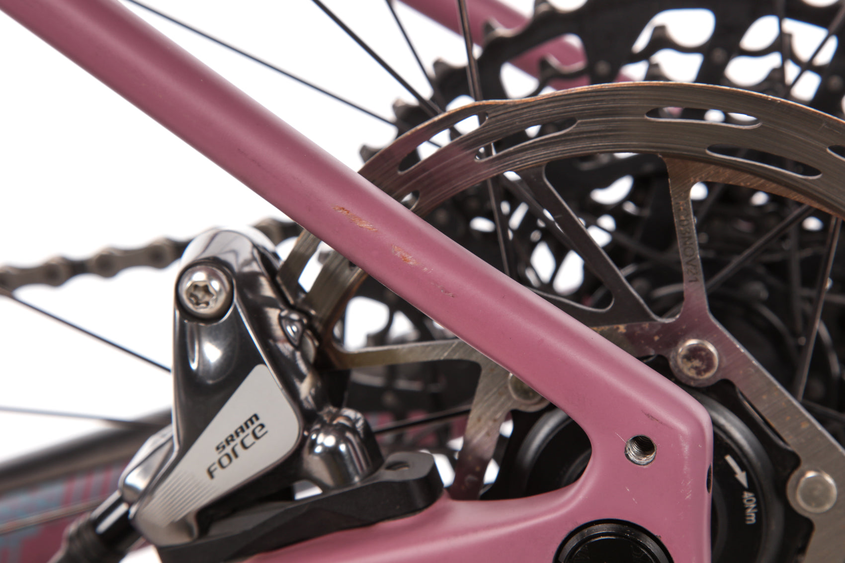 • Light scratches on the rims, top tube, down tube, drive side bottom bracket area, & non-drive side seatstay