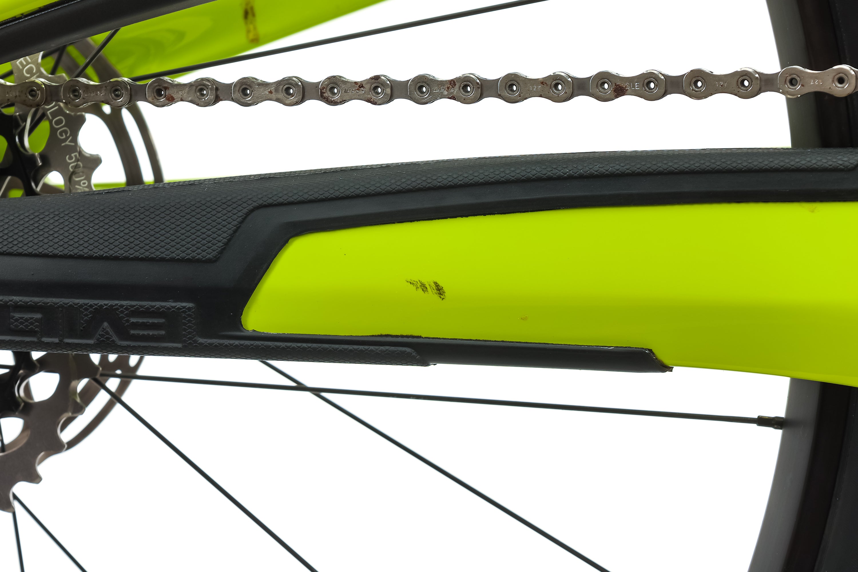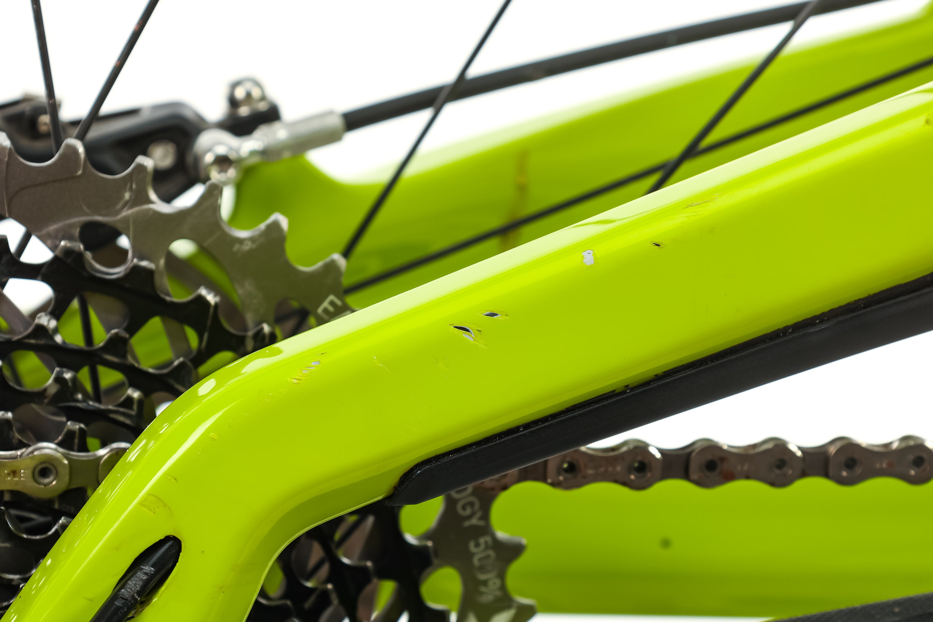 • Light scratches on fork lowers, down tube, drive side seatstays, drive side chainstay, & rear derailleur