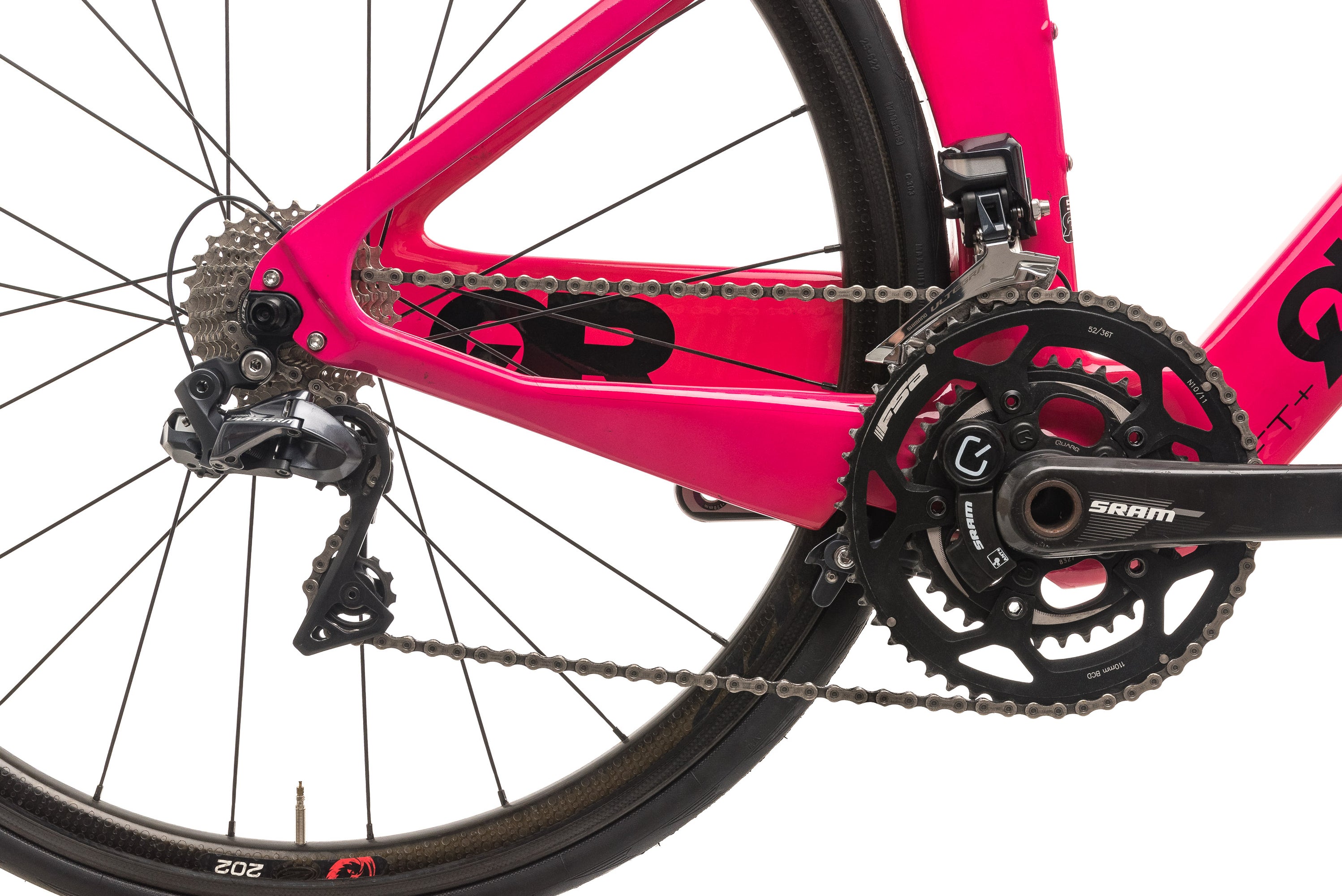 | Crankset | SRAM Carbon Crank Arms w/ FSA Alloy Chainrings and Quarq Drive Side Power Meter We only purchase premium power meters in good condition, but due to the sensitivity of these devices, we cannot guarantee battery life, accuracy, or calibration., 52/36t, 170 mm |