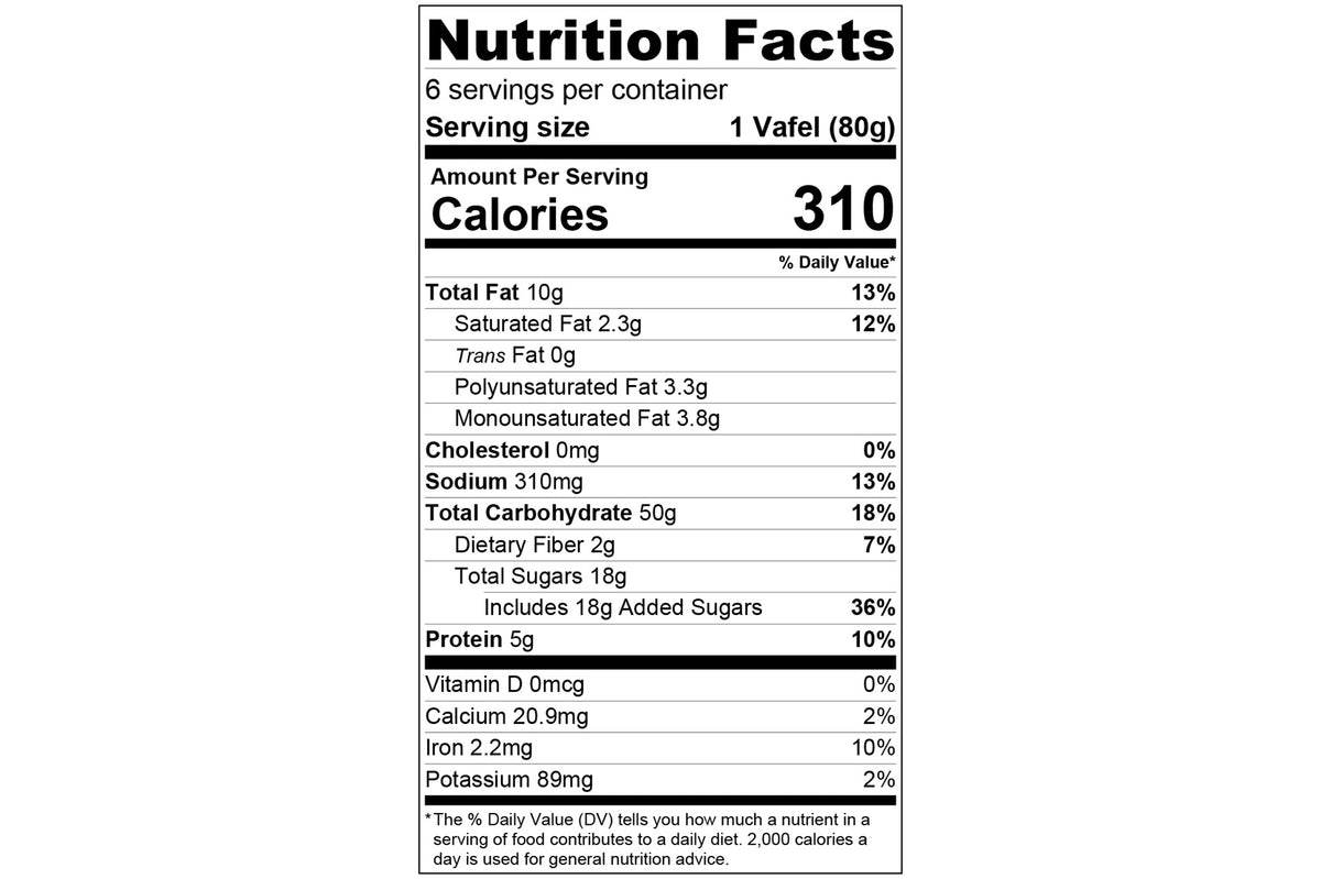 How to eat: Vafels are pre-baked and ready-to-eat. We recommend them toasted or at ambient temperature, but some of our most die-hard Vafel enthusiasts like to put them in the microwave for 10" or eat them straight out of the freezer on a hot day.